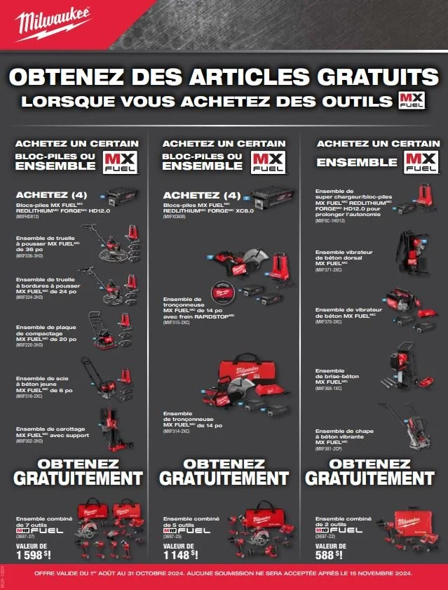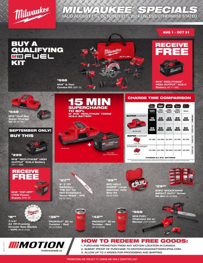 CURRENT PROMOTIONS P3 PROMO FLYER ENGLISH 2024 MOTION SALES GUIDE P3 PROMO FLYER FRENCH MX FUEL P3 E-REBATES ENGLISH TRANSPORTATION BLITZ JUL/AUG FREE CUSTOMIZATION ENDS JULY 31 MX FUEL P3 E-REBATES FRENCH LINK TO E-REBATE REDEMPTION SITE CATALOGS & SOLUTIONS GUIDES CORDLESS SOLUTIONS GUIDE COST SAVINGS SOLUTIONS GUIDE POWER TOOL ACCESSORIES CATALOG NEW! DUAL TRIGGER GRINDER M18 REDLITHIUM FORGE™ MECHANICS HAND TOOLS NEW! TAPS AND DIES MADE IN USA HAND TOOLS PPE CATALOG