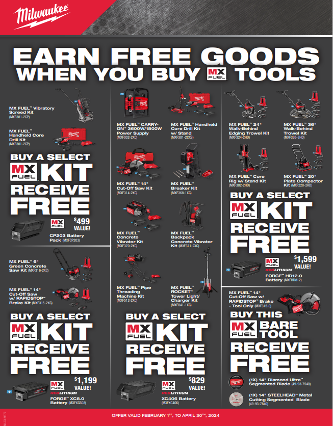 FIND YOUR LOCAL MILWAUKEE REP 🔍︎ FIND YOUR LOCAL MILWAUKEE REP 🔍︎ FIND YOUR LOCAL MILWAUKEE REP 🔍︎ SIGN UP FOR MILWAUKEE CONNECT CLICK HERE TO LEARN HOW TO SIGN UP FOR CONNECT ARCHIVED RESOURCES FEB-APR 2024 PROMOTIONAL FLYER FRENCH FEB-APR 2024 PROMOTIONAL FLYER ENGLISH FEBRUARY - APRIL 2024 MX FUEL E-REBATES
